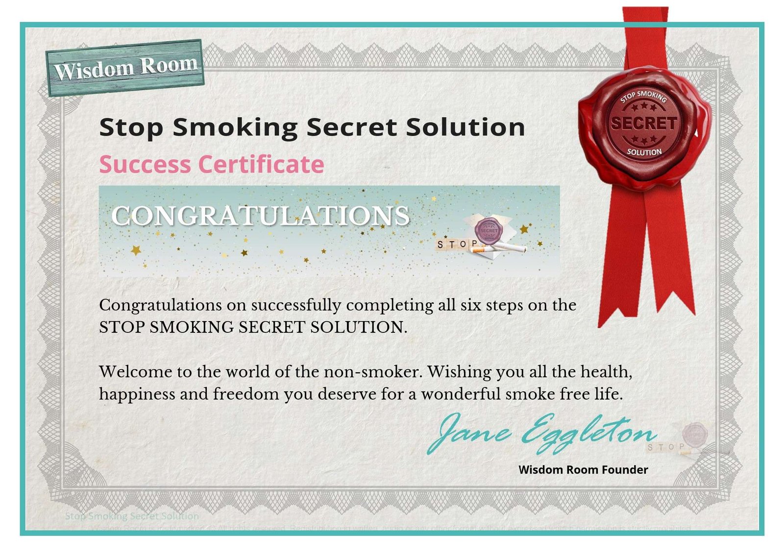 Stop Smoking Secret Solution (SSSSh) Success Certificate