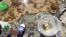 We trawled the rock pools near the beach and managed to fill a bucket with three tiny fish, two shrimps and a water snail and they were absolutely delighted with their final catch. As was I. The only thing eluding us was a crab! Next time I promised.
