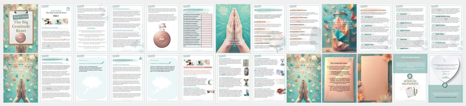 A comprehensive 26-page Wisdom Worksheet designed to ramp up your levels of appreciation and change a negative mindset in an instant