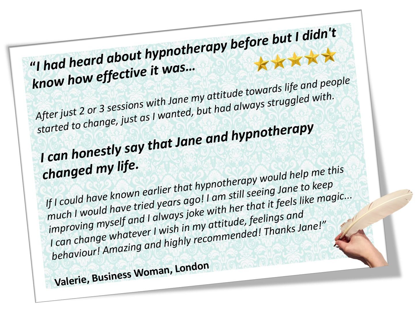 The techniques we use are fast and effective in helping change negative and harmful thought processes and unwanted behaviour because we are able to access the deeper (unconscious) level of the mind directly via hypnotherapy and Neuro-Linguistic Programming (NLP). Combined with Cognitive Behavioural Therapy (CBT) which uses a solution focused approach to problem solving the results can be extremely powerful. When used together Hypnosis, CBT and NLP intensifies an individual’s ability to respond and therefore improves the likelihood of a positive outcome.